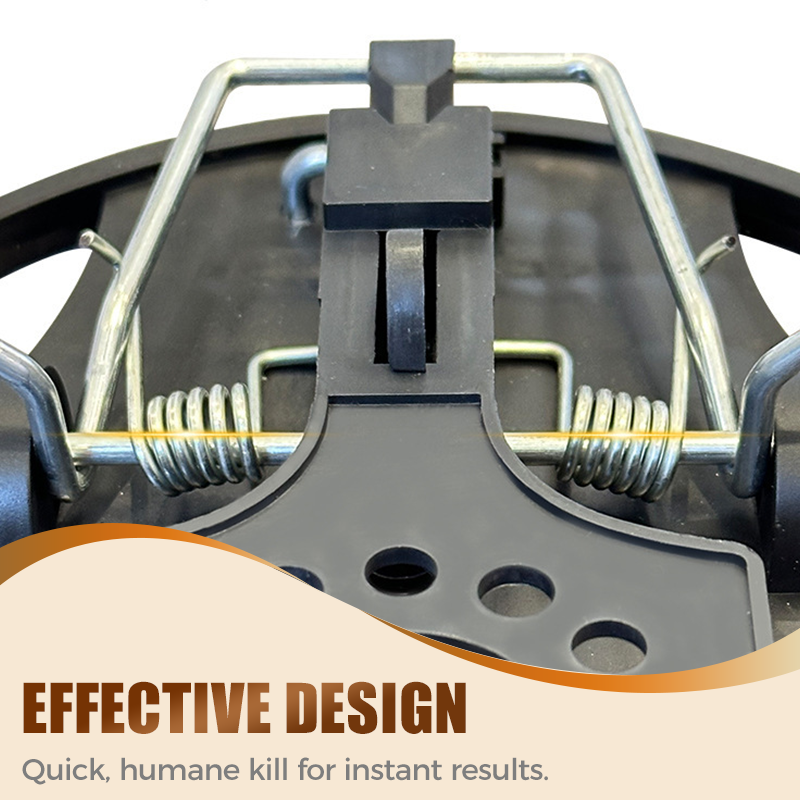 עיצוב יעיל ביותר - כולל מנגנון לחיצה עוצמתי המבטיח הרג מהיר והומאני. נבנה כדי לחסל עכברים באופן מיידי, להפחית סבל ולשמור על ביתכם נקי מלכלוך, נזק וריחות הקשורים למכרסמים.