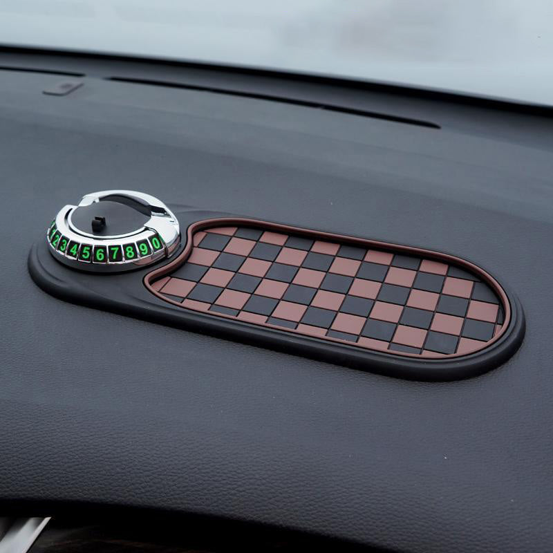 מחזיק טלפון סלולרי + לוחית רישוי לחניה + שטיח אחסון מחזיק רכב רב תכליתי עמיד ומונע החלקה, הופך את הנהיגה לבטוחה וקלה יותר.